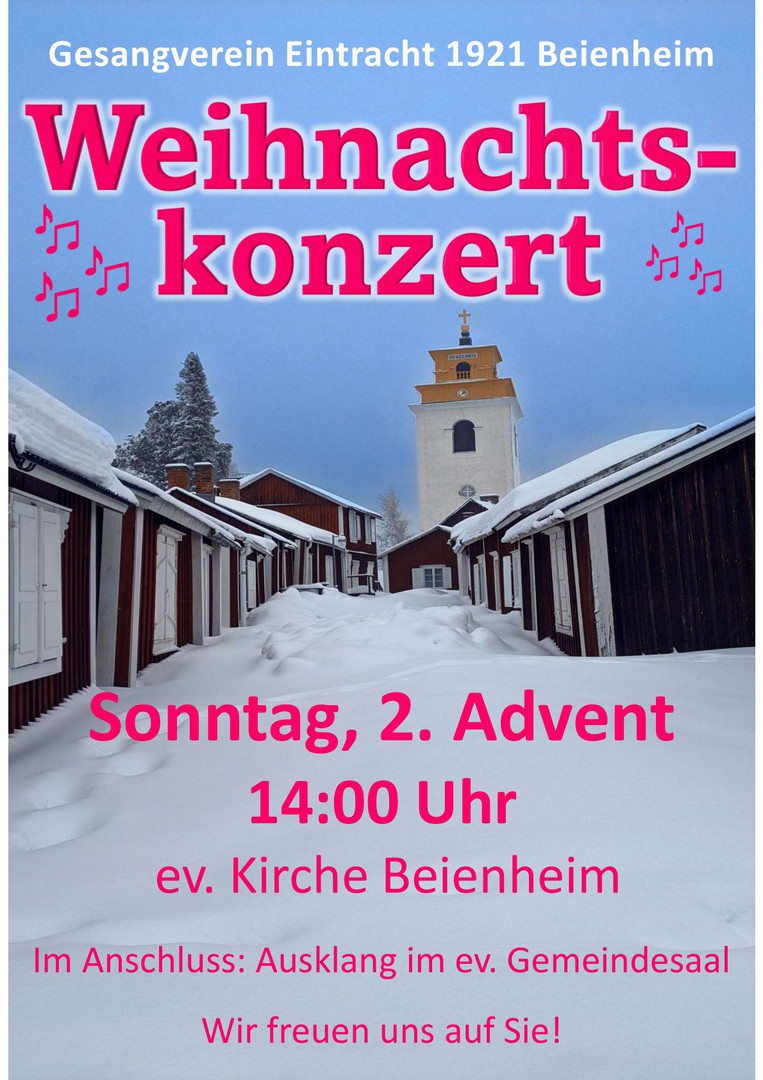 07. Dezember 2025 – Adventskonzert. Traditionell wird unser vorweihnachtliches Konzert am Adventsonntag in der Beienheimer Kirche aufgeführt. Beginn ca. 14:00 Uhr