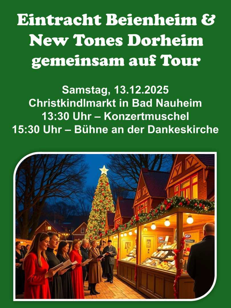 Lassen Sie sich zu ein paar besinnlichen Stunden einladen und genießen Sie die weihnachtliche Stimmung und Freude zum bevorstehenden Fest mit uns. Wir laden Sie zu unserem Weihnachtskonzert am 08. Dezember 2024 14:00 Uhr in der Beienheimer Kirche und im Anschluss zu einem geselligen Bei