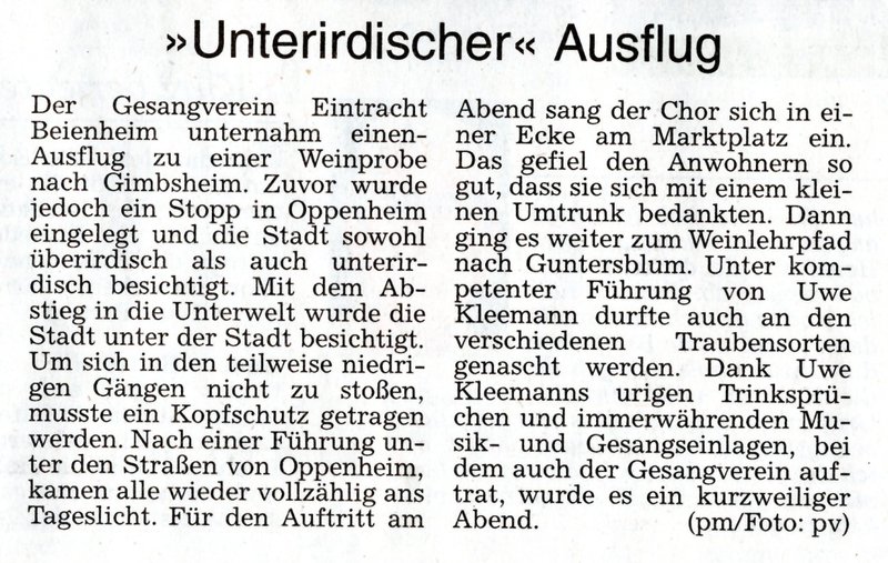 GESANGVEREIN EINTRACHT 1921 BEIENHEIM FEIERT JUBILÄUM