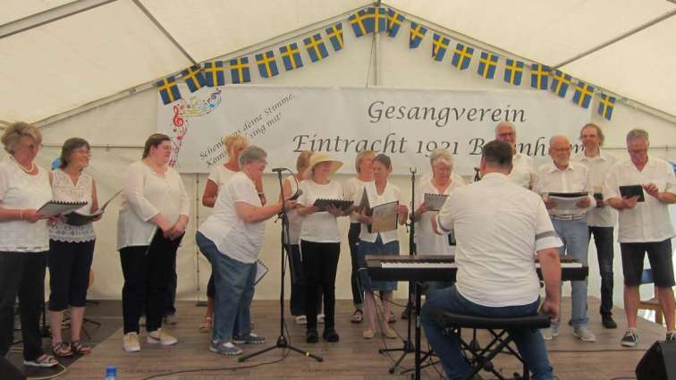 Reichelsheim (pm). Die Eintracht Beienheim hatte unter dem Thema Mittsommer in buntes, anspruchsvolles Gesangsprogramm erarbeitet und den gespannten Gästen kürzlich unter freiem Himmel dargeboten. In Anlehnung an den schwedischen Mittsommer wurde ein echter Mittsommerbaum unterhalb des Kirchengeländes aufgestellt, wie der Gesangverein weiter mitteilt. Auch die Dekoration hielt sich in den schwedischen Farben Blau und Gelb.