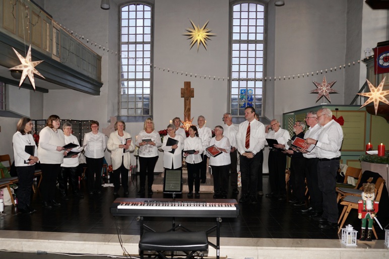 Am Anfang stand ein von Pfarrer Miethe geleiteter nachdenklicher, doch auch fröhlich stimmender Gottesdienst, bei dem die Gemeinde von den Sängerinnen und Sängern kräftig unterstützt wurde. Im Anschluss begann das Programm, durch mit einem in a cappella und schwedischer Sprache vorgetragenen Lied »Vem kan segla…«. Es folgte das stimmungsvolle »Memory« aus dem Musical »Cats«.